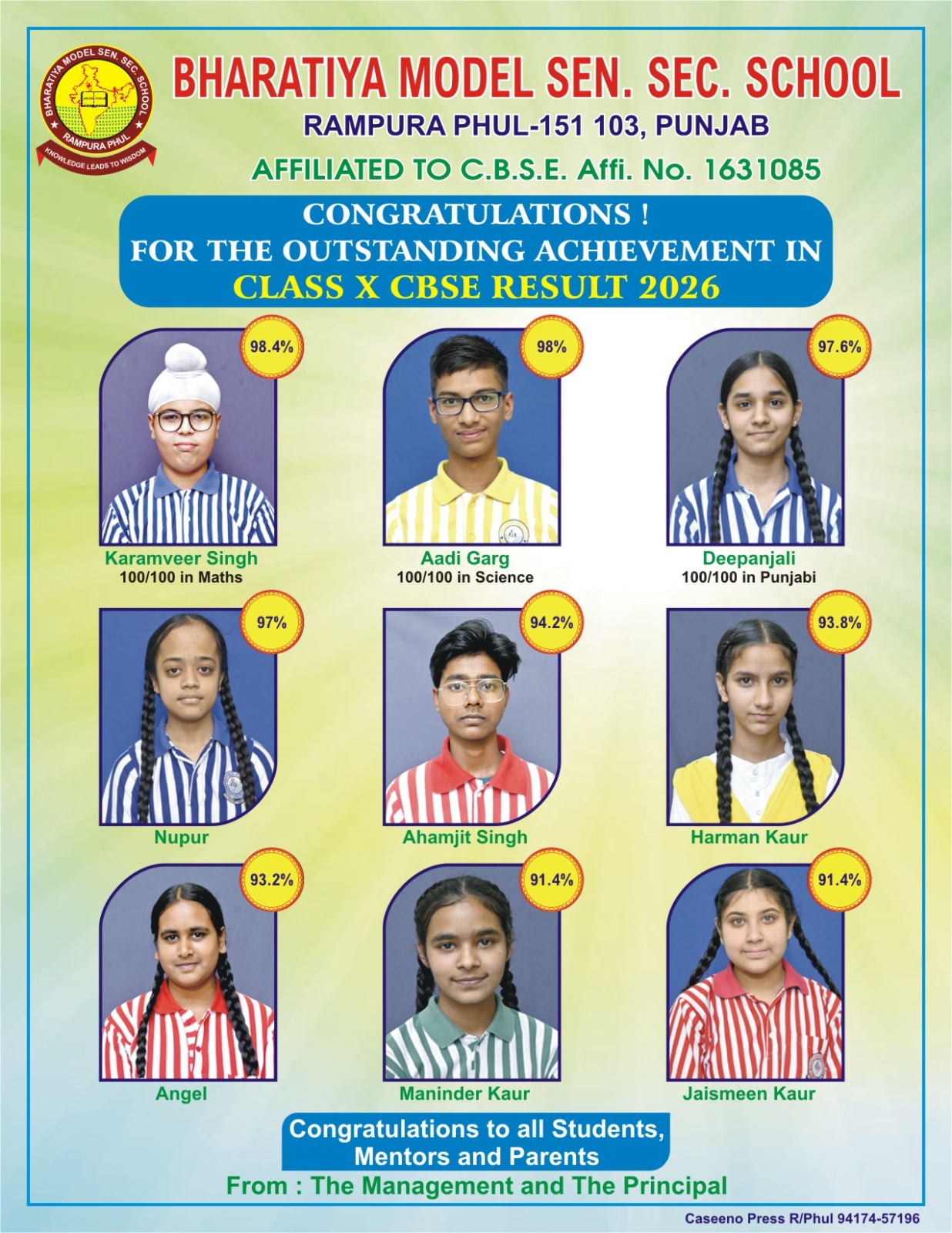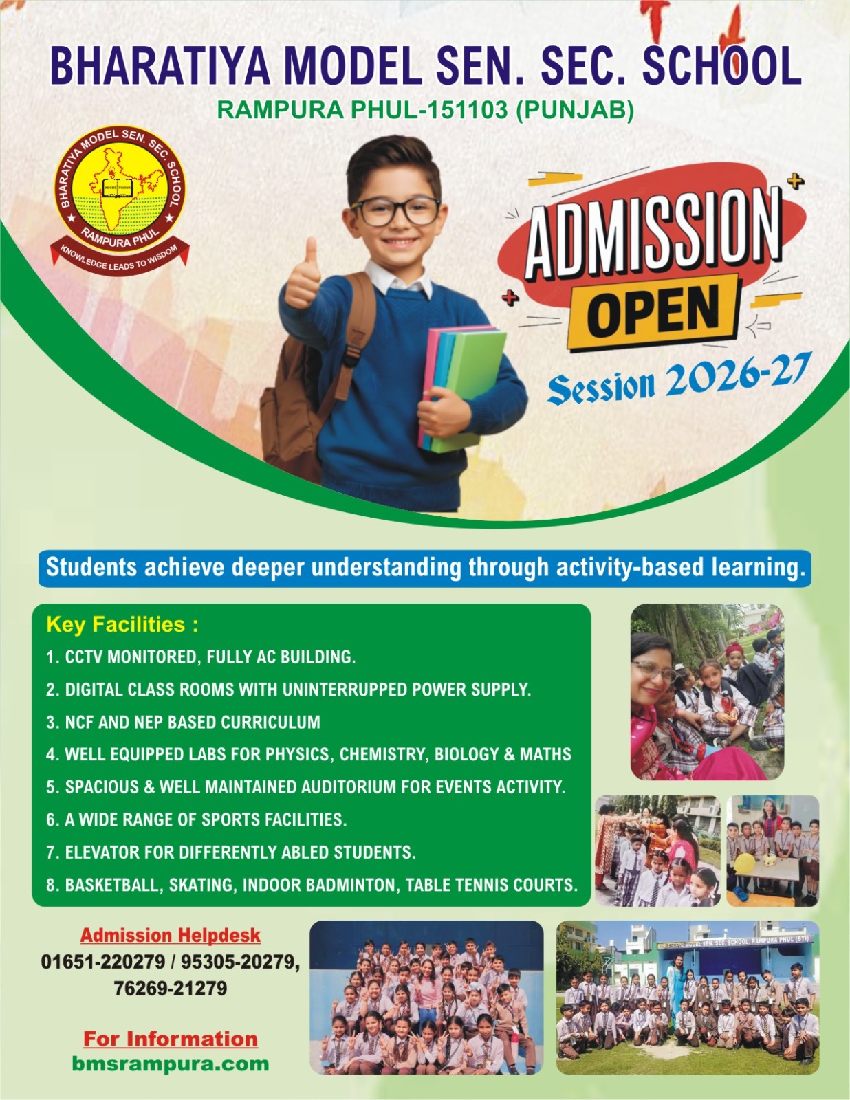 The words of Iqbal are being realized aptly by the students of Bharatiya Model Sen. Sec. School, Rampura Phul. Here at the School, the kids are nurtured so delicately at their formative age that they imbibe all the social and moral characters required for their later life. The school enjoys its monopoly in providing the best results in the region. Our motto is to facilitate holistic development of the students. A conglomeration of curricular, extra curricular and co – curricular activities, the school is producing Doctors, Engineers, Lawyers, Administrative officers, Musicians and Sportspersons every year.