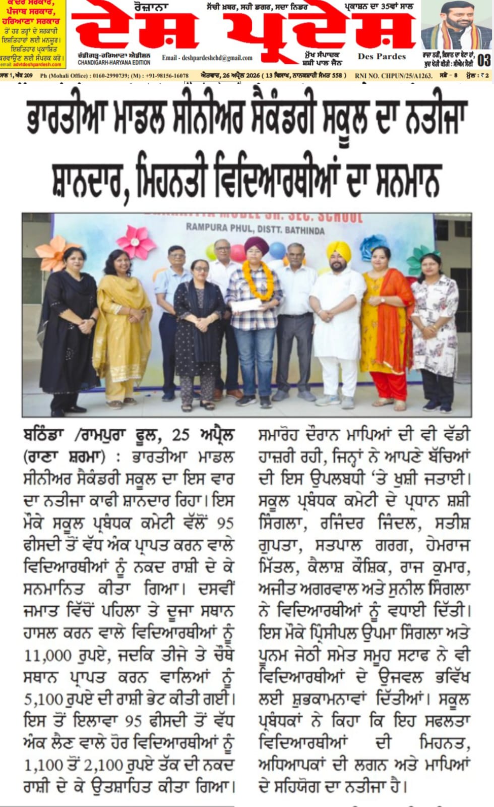 We want to update you with the happenings in and around the walls of Bharatiya Model Sen. Sec, School. I request you to encourage us with your constructive suggestions. We will try to be very informative. The school always strives to stay on the cutting edge of a new and sound educational programmes. With a strong support of dedicated and well qualified teaching faculty; co – workers, students and parents committed to excellence. We are always inspired from parents’ continuous motivation, great encouragement and firm support. We have always been proud of and satisfied at our levels to have completed about thirty six successful academic years with a lot of awards, high standard achievements and great appreciation in the locality.